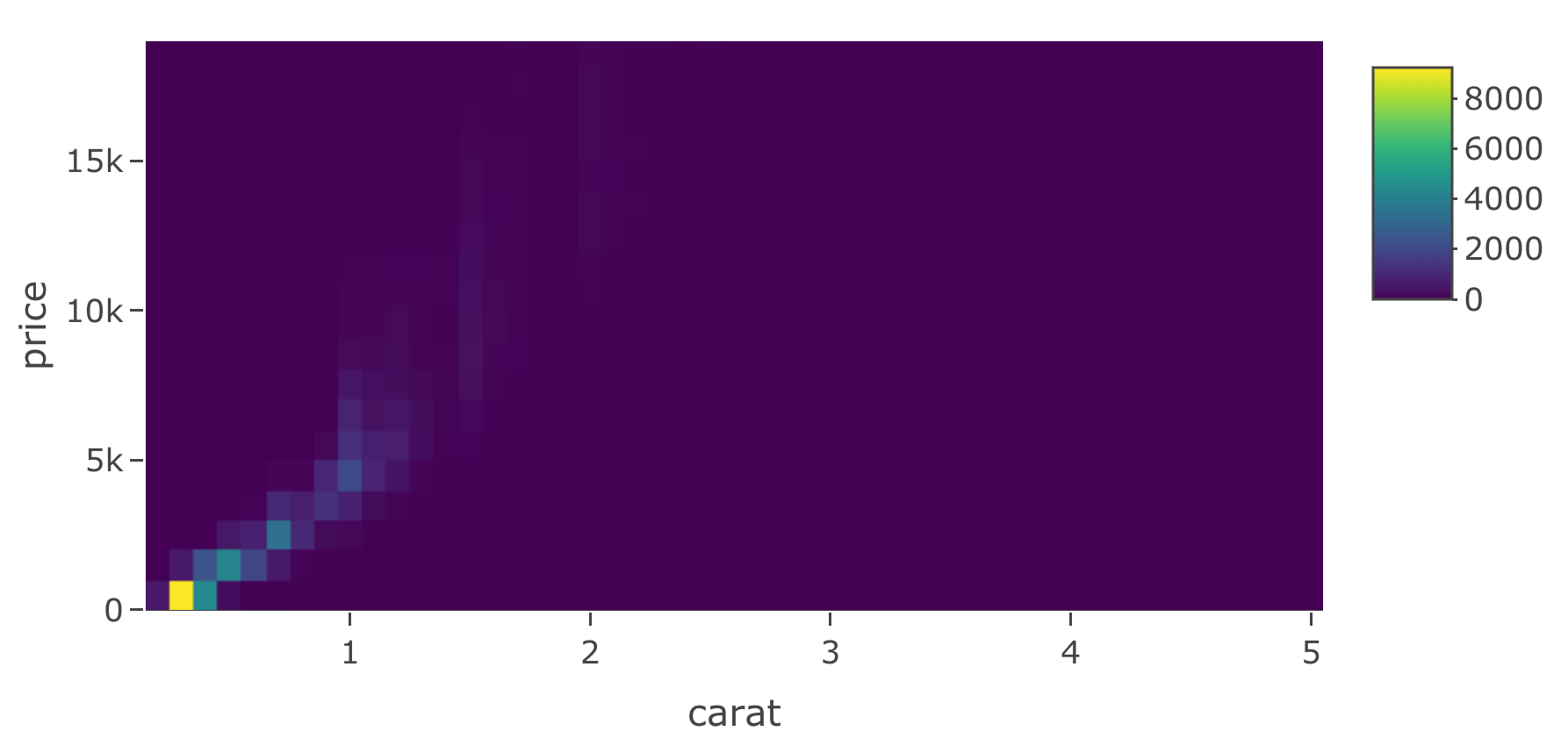 For "heavy-tailed" distributions, it can be useful to perform the summary (e.g., log counts) in R yourself. For more on this, see https://plotly-r.com/frequencies-2d